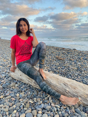 Model wearing small tee and Buddha leggings. Link: Buddha Leggings