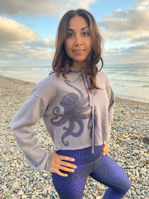 Purple Octopus Crop Hoodie